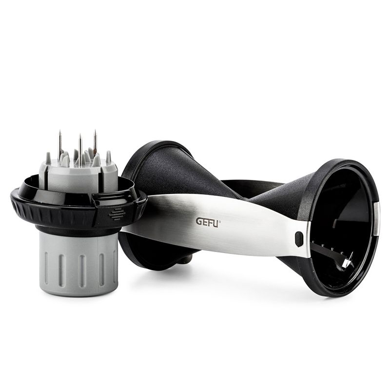 Безопасный в использовании: держатель с тремя штырьками из нержавеющей стали не только гарантирует надежное удержание овоща, но также защищает пальцы от порезов. Данный аксессуар идеально подходит для любителей овощей.