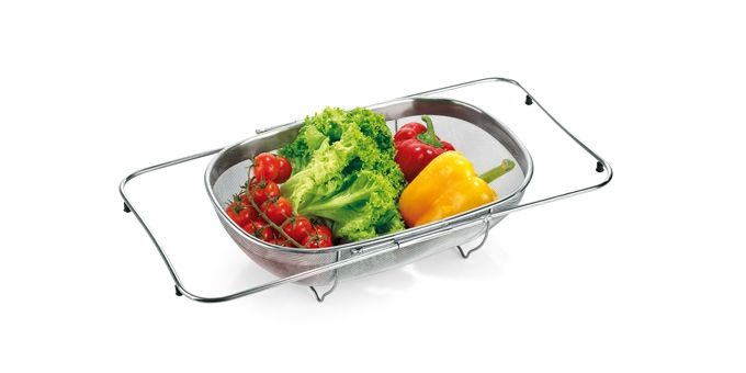 Замечательна для процеживания, ополаскивания и стекания макарон, овощей, фруктов и т.д., можно использовать в качестве сервировочной корзинки. Выдвижные ручки длиной 34-54 см позволяют ее использовать в раковинах всех стандартных размеров. Изготовлено из первоклассной нержавеющей стали, можно мыть в посудомоечной машине. Гарантия 3 года.
