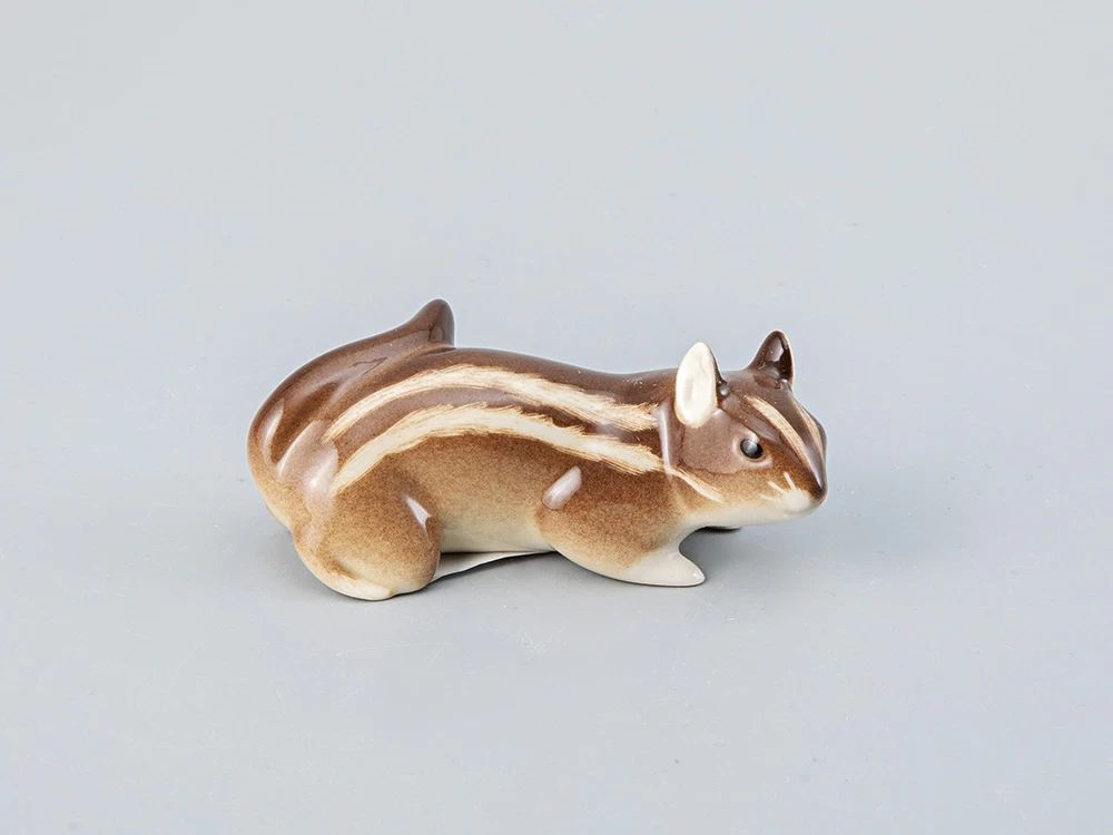 Скульптура Бурундучок изготовлена на Императорском фарфоровом заводе из мягкого фарфора в технике ручной подглазурной росписи. Автор формы - Веселов П.П. Высота скульптуры - 35 мм.