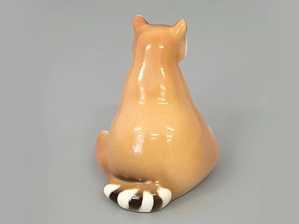 Скульптура Енот изготовлена на Императорском фарфоровом заводе из мягкого фарфора в технике ручной подглазурной росписи. Автор формы - Веселов П.П. Высота скульптуры - 108 мм.