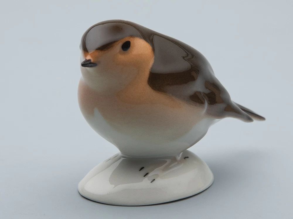 Скульптура Малиновка м.р. изготовлена на Императорском фарфоровом заводе из мягкого фарфора в технике ручной подглазурной росписи. Автор формы - Веселов П.П. Высота скульптуры - 61 мм.
