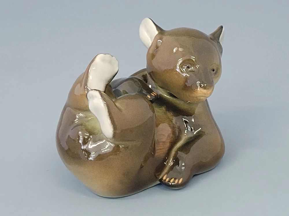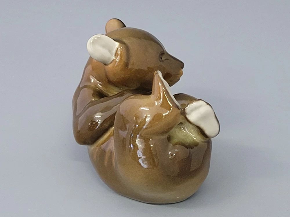 Скульптура Медвежонок изготовлена на Императорском фарфоровом заводе из мягкого фарфора в технике ручной подглазурной росписи. Автор формы - Веселов П.П. Высота скульптуры - 87 мм.