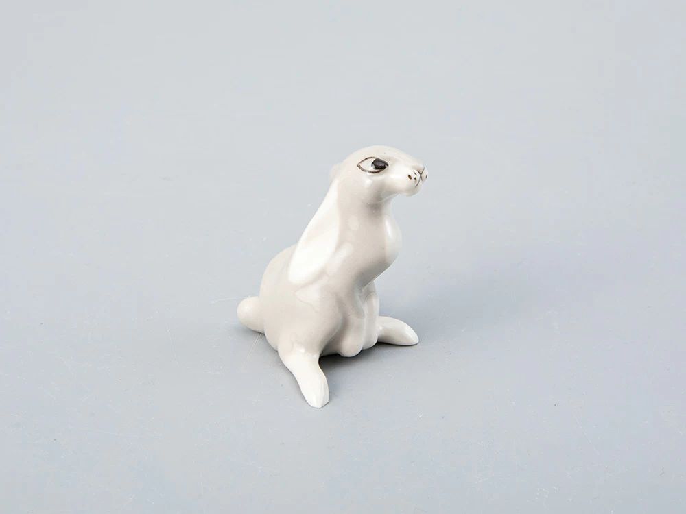 Скульптура Зайчонок изготовлена на Императорском фарфоровом заводе из мягкого фарфора в технике ручной подглазурной росписи. Автор формы - Муратов Н.Е. Высота скульптуры - 43 мм. Скульптура "Зайчонок" создана в 1949 году Муратовым Н.Е.